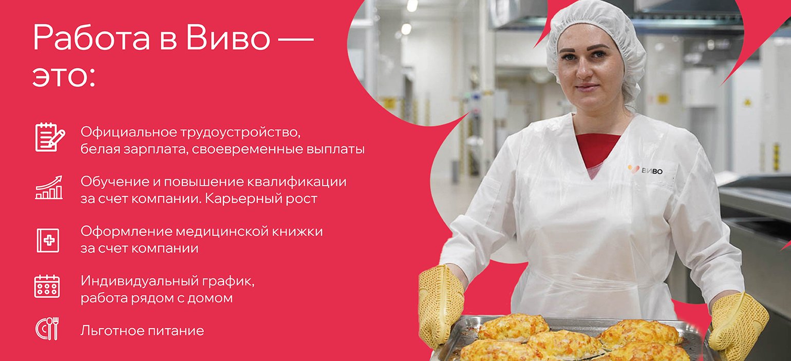 Компания «Виво Маркет» приглашает на работу ответственных и аккуратных кухонных работников для пищеблока школы!